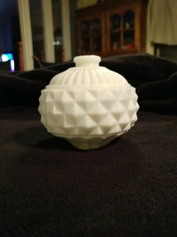 Antique LIGHTNING ROD BALL ~ RIBBED DIAMOND ~ MILK GLASS