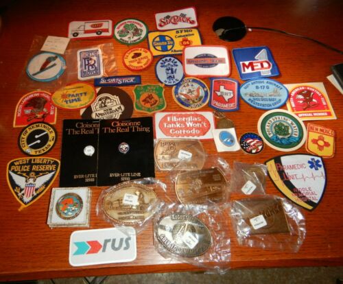 Title (ebay affiliate link): Lot of vintage Salesman Samples Patches Pins and Belt Buckles