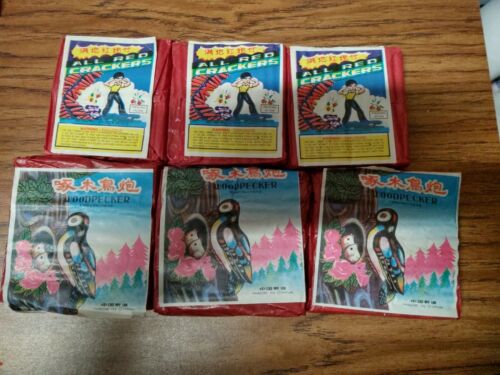 Title (ebay affiliate link): FIREWORK FIRECRACKER LABEL RED CRACKER AND WOODPECKER PACK LOT LOGOS