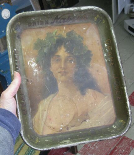 Title (ebay affiliate link): antique metal Grape Juice serving TRAY pretty girl NABOTH 10+"x 13+" advertising