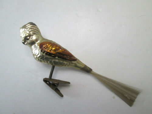 Antique Vtg Mercury Glass Parrot Parakeet Clip On Bird Christmas Ornament 4573
