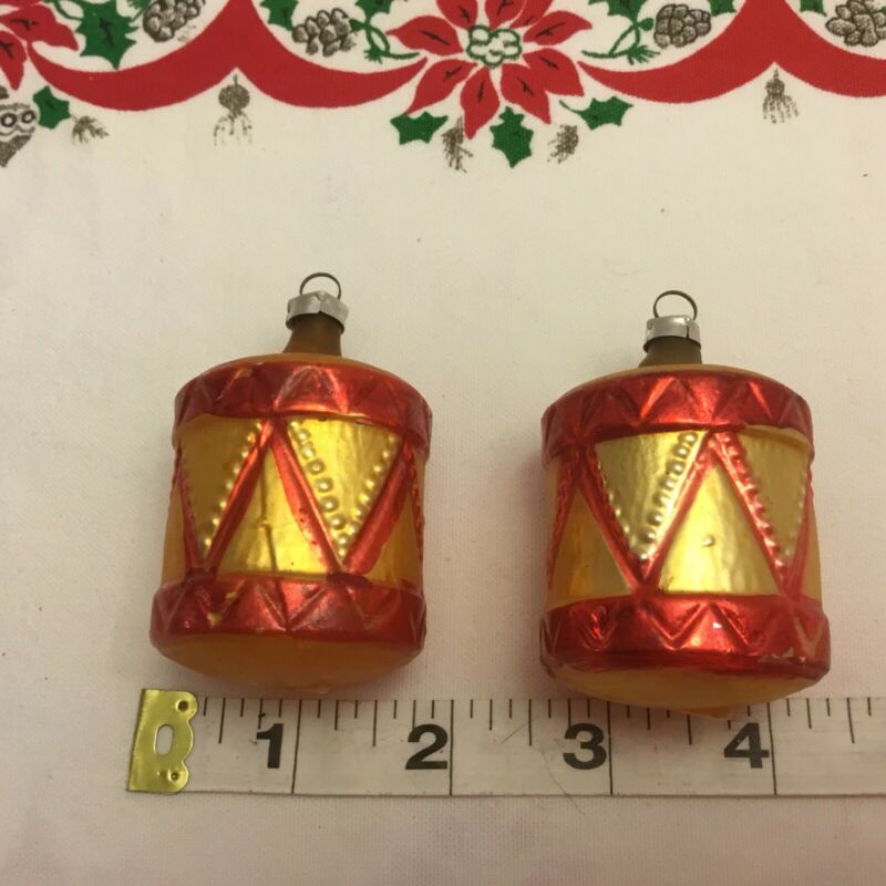 VINTAGE CHRISTMAS GLASS FIGURAL BLOWN GLASS DRUMS ORNAMENTS West Germany