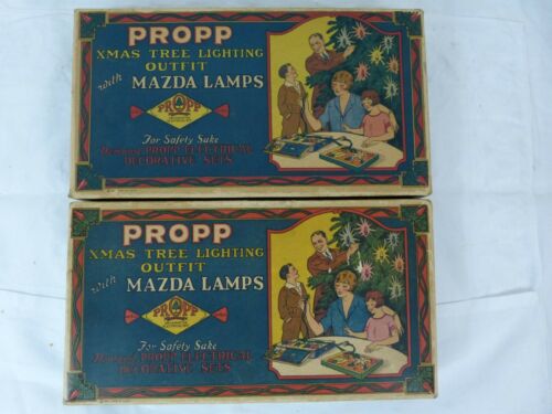 Title (ebay affiliate link): 2 boxes of antique Christmas Lights PROPP MAZDA LAMPS Lighting Outfit