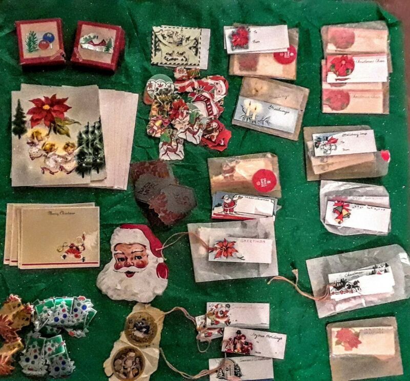 Title (ebay affiliate link): VTG Christmas Seals Stickers Stamps Gift Tags~1940''s-50''s~HUGE LOT