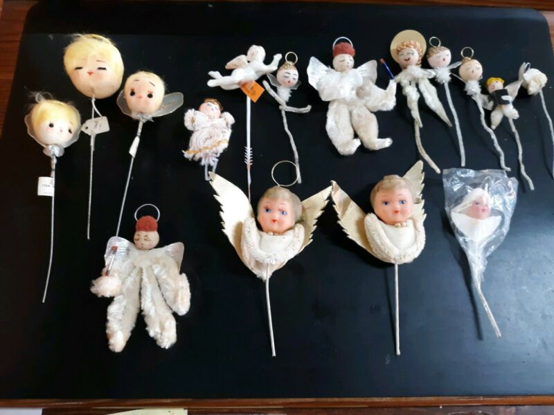 Vintage Chenille Angels Spun Cotton Pipe Cleaner rubber Face Japan LOT 16