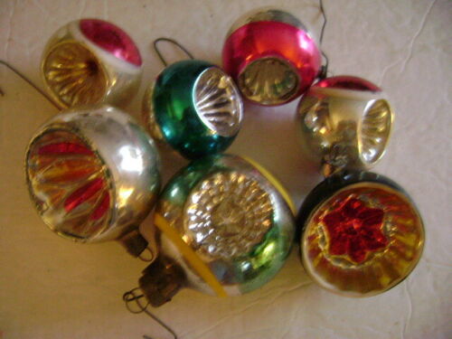 7 antique glass ornaments,all with indents