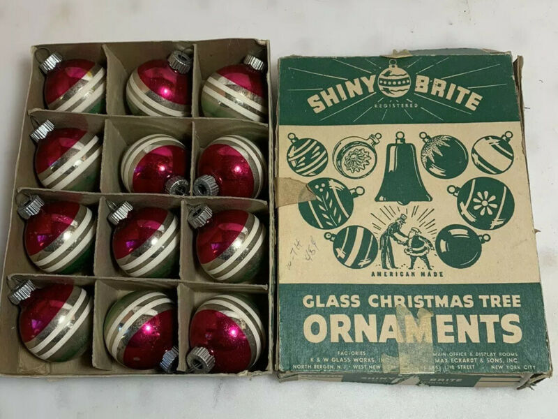 Title (ebay affiliate link): 12 Matching Antique Vintage Shiny Brite Glass Christmas Tree Ornaments Orig Box