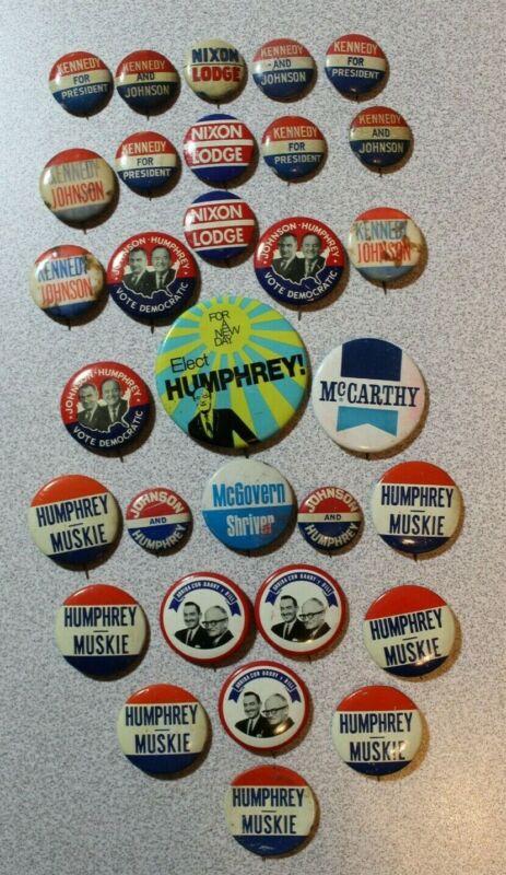 Lot 31 Political Campaign Lapel Pin Buttons Kennedy Nixon Goldwater Humphrey