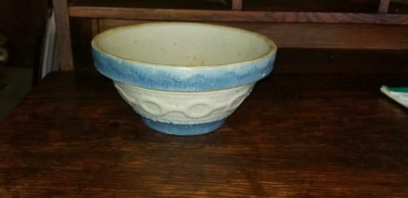 ANTIQUE FOLK ART BLUE AND WHITE STONEWARE BOWL PRIMITIVE