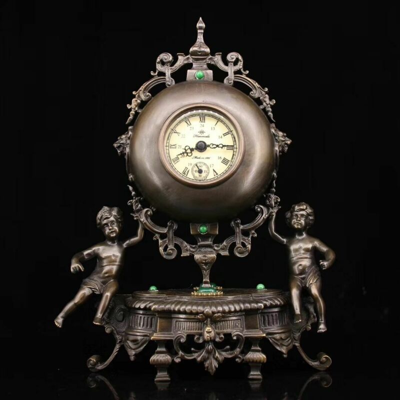 Title (ebay affiliate link): Collectible Handmade Statue angel Mechanical Clock Brass Gemstone inlay