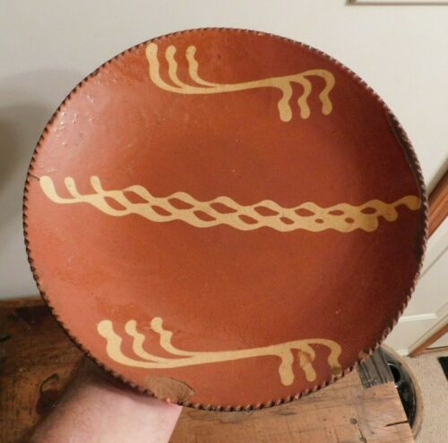 Antique Pennsylvania Redware Slip Decorated Coggle Edge Plate