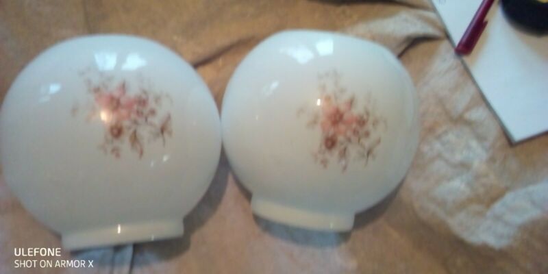 Title (ebay affiliate link): Pair of glass Oil Lamp Shades. White glass with flowers.