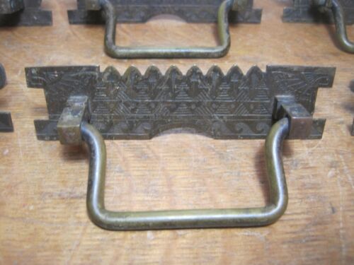 8 Antique Eastelake Esthetic Stamped Fan Brass Back Plate Bail Drawer Pulls