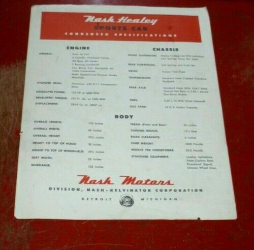 Title (ebay affiliate link): Nash Healey car advertising- single sheet- original -2 sided