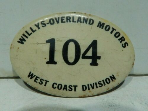 Title (ebay affiliate link): EARLY WILLYS-OVERLAND MOTORS WEST COAST DIVISION EMPLOYEE NUMBERED PINBACK BADGE