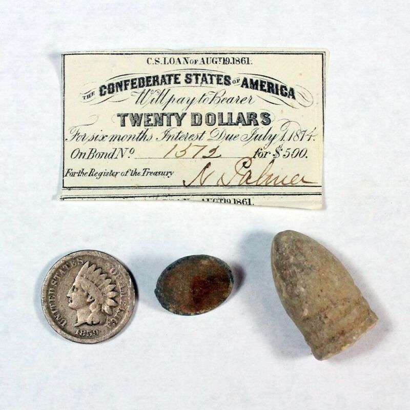Title (ebay affiliate link): Civil War Bullet Old Coin Confederate Note Original Page Newspaper + Bonus 3630