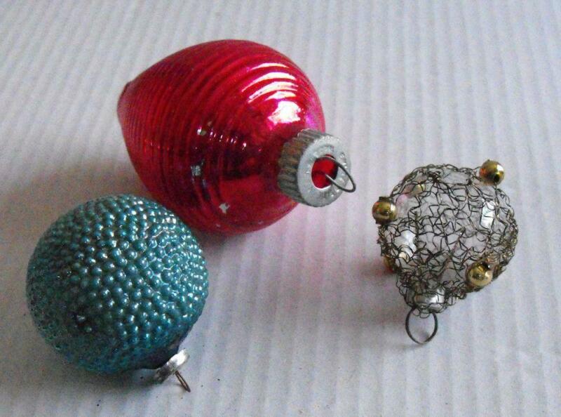 Title (ebay affiliate link): 3 Vintage Sm Blown Glass Christmas Ornaments Ribbed, Bumpy, Unusual Wire Wrapped