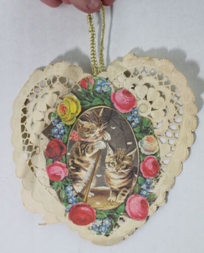 Title (ebay affiliate link): Paper Bird & Kittens On Doily Christmas Ornament Vintage