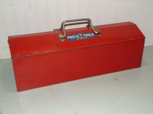 VINTAGE PROTO TOOL BOX FLYING LADY BLUE LOS ANGELES HIP ROOF w/TRAY 100 METAL