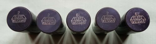 Title (ebay affiliate link): 5 empty Leitz Wetzlar Microscope Lens cases, Black lacquered