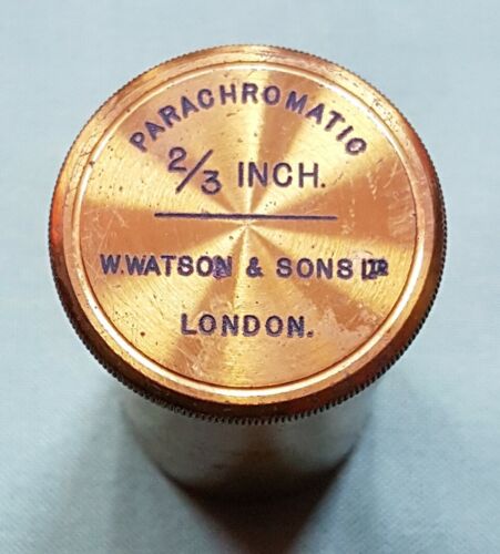 Title (ebay affiliate link): Lacquered Brass Microscope Lens Case, PARACHROMATIC 2/3 INCH WATSON & SONS