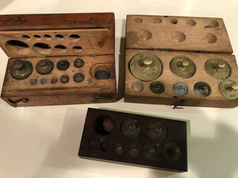 Title (ebay affiliate link): 3 Sets Antique Apothecary Scale Weights In Wooden Specialty Boxes Eimer Amend