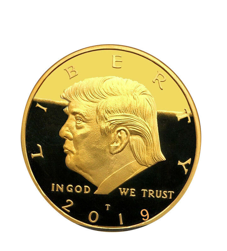 Title (ebay affiliate link): 2019 President Donald Trump Gold Plated EAGLE Commemorative Coin Republican RF