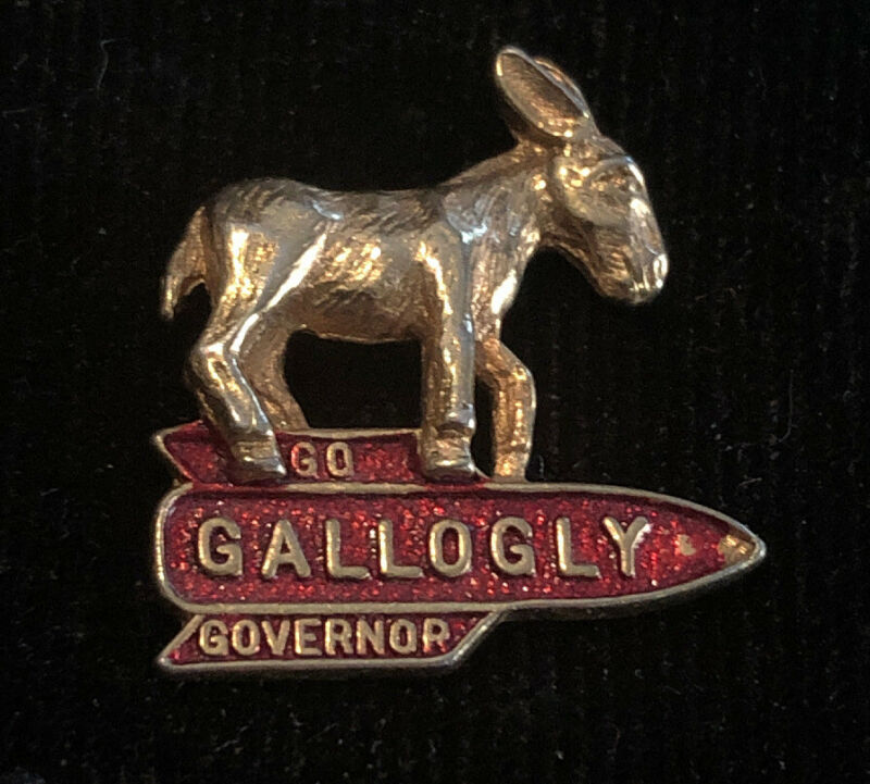 Title (ebay affiliate link): DEMOCRATIC DONKEY GALLOGLY GOVERNOR LAPEL PUSH PIN SKU110887P
