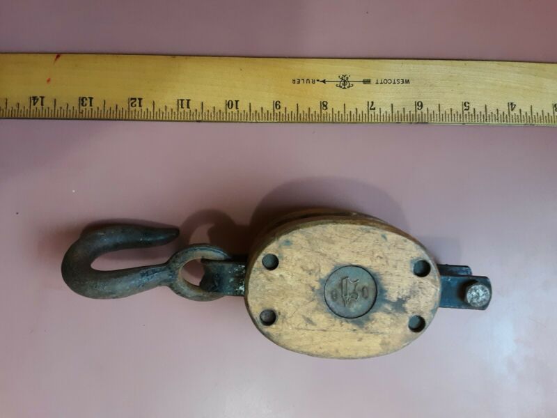Vintage wooden pulley anvil brand