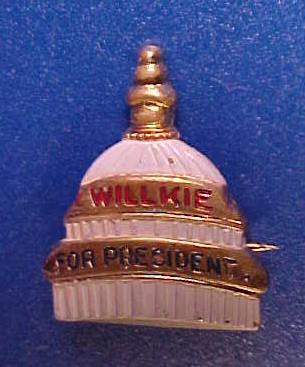 WILLKIE ENAMEL PIN Capitol Dome Jewelery 1940 Roosevelt