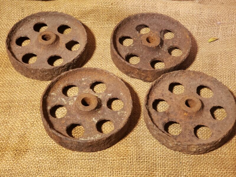 SET OF 4 CAST IRON WHEELS FARM SCALE INDUSTRIAL CART CASTERS DIY PROJECT 4 1/2"