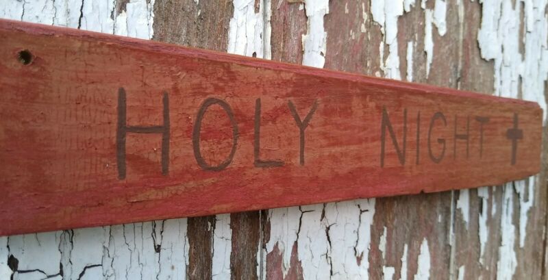 Old early Primitive antique farm chippy Barn wood sign HOLY NIGHT cross