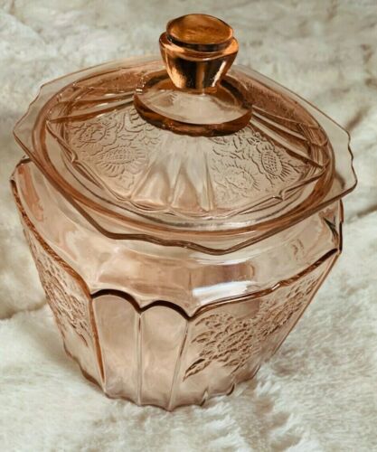 Title (ebay affiliate link): Cookie Jar & Lid Mayfair Pink by ANCHOR HOCKING depression glass