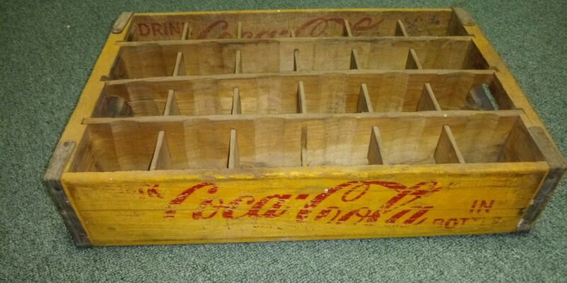 VTG 1950s Coca-Cola Wooden Yellow Soda 24 Bottle Crate Carrier Box case coke