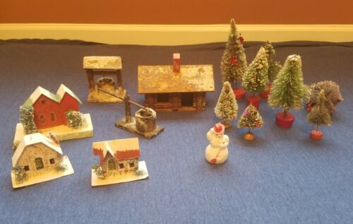 Title (ebay affiliate link): Christmas Lot Putz Bottle brush trees wells Snowman Village Train Vintage