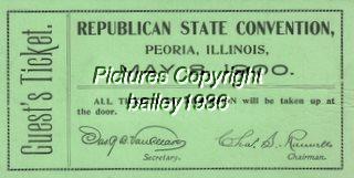 Republican State Convention Guest Ticket 1900 Peoria IL