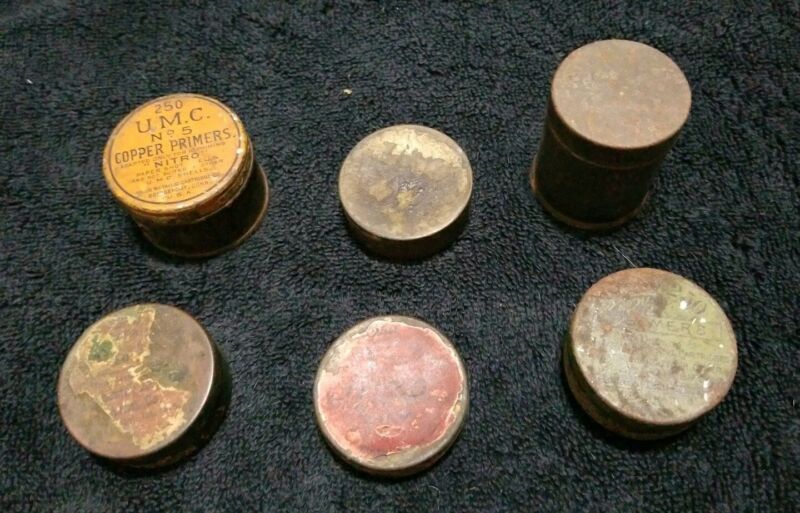 Lot of 6 vintage primer tins U.M.C. Worchester + others