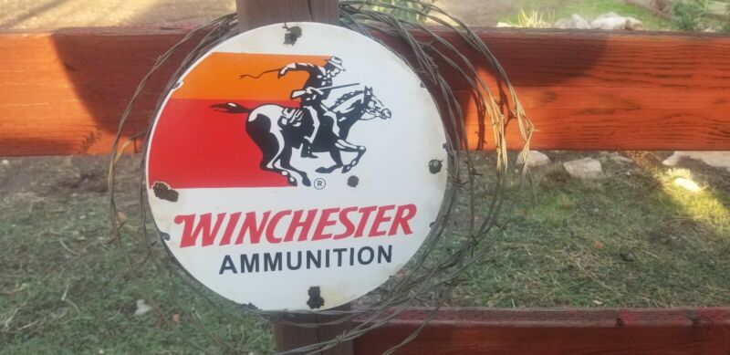 " ." Winchester" "12x12"Vintage steal porcelain Advertising sign.