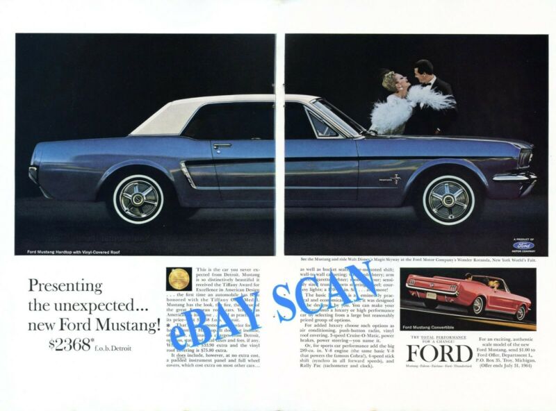 Title (ebay affiliate link): Very early 1964 Ford Mustang w/ vinyl roof original double page ad +CD BONUS!!