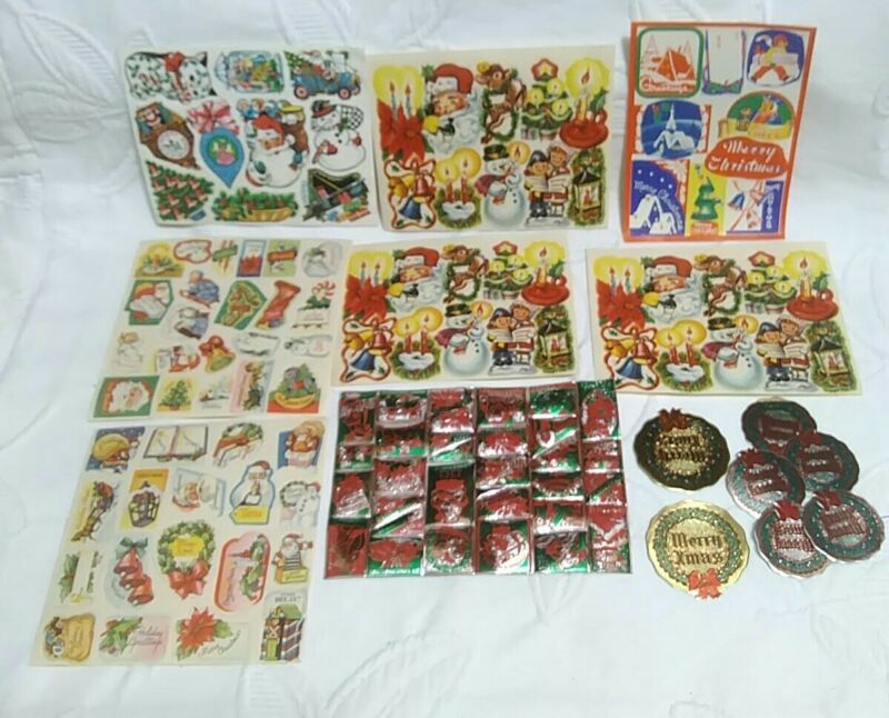 Title (ebay affiliate link): 125 Vintage Christmas Gummed Foil Seals and Stickers Deer Santa Children Snowman