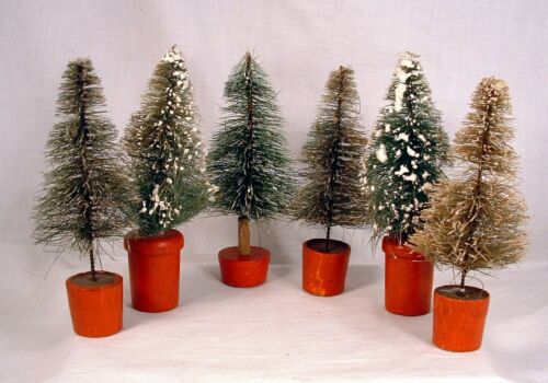Lot of 6 Vintage 1930''s Bottle Brush Christmas Trees for Putz Christmas Village