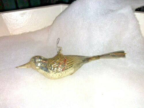 vtg Antique Mercury Glass Hanging Bird real feather tail Xmas Ornament figural