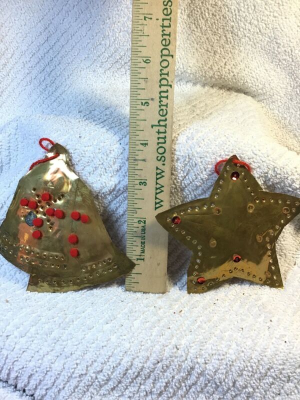 Title (ebay affiliate link): Vintage hand punched metal gold star and Bell Christmas tree ornaments