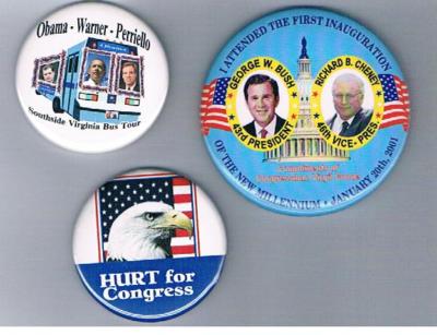 Political Pins(3)-VA Obama/Warner/Perriello/Bush/Cheney