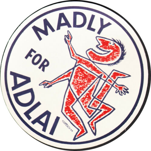 Title (ebay affiliate link): Original "Madly for Adlai" Stevenson Wonderful Window 4 1/2" wide Sticker, mint