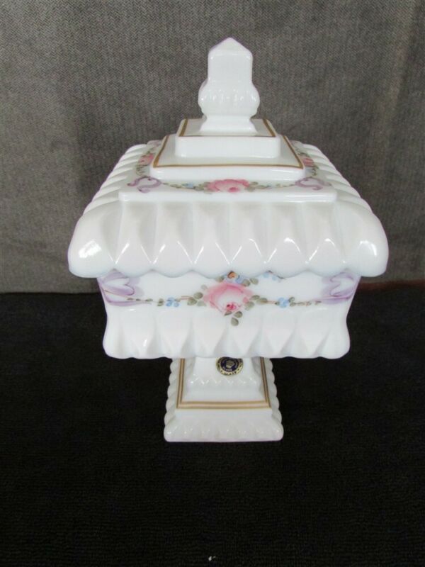Westmorland Glass White Milk Glass Decorated Covered Candy Dish D-39