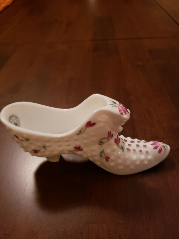 Title (ebay affiliate link): Fenton MilkGlass Hobnail Cathead Slipper Victorian Shoe 95th Anniversary Signed