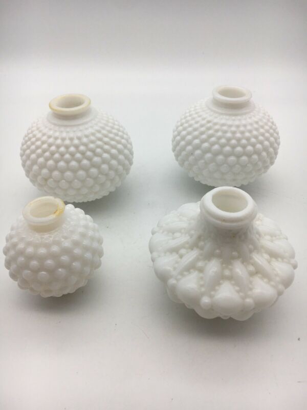 Vintage Milk Glass Lamp Parts Spacers Hobnail Textured Globes Lot Of 4