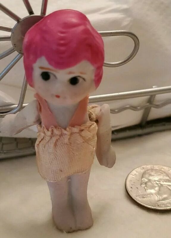 Title (ebay affiliate link): Sweet Antique Bisque Doll 3" pink hair,side glancing eyes Japan miniature