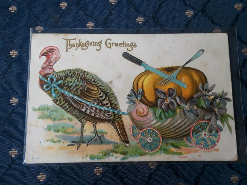 Title (ebay affiliate link): Thanksgiving TURKEY WITH PUMPKIN ON A CART 1914 Piqua Ohio Postcard